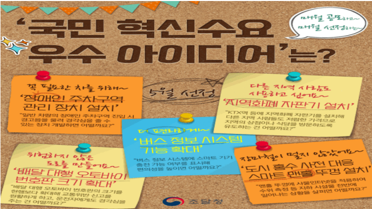 생활 속에서 겪고 있는 불편함이나 개선하고 싶은 문제들을 국민에게 직접 듣고, 이것을 제품화하여 국민의 삶의 질을 높일 수 있는 아이디어입니다.