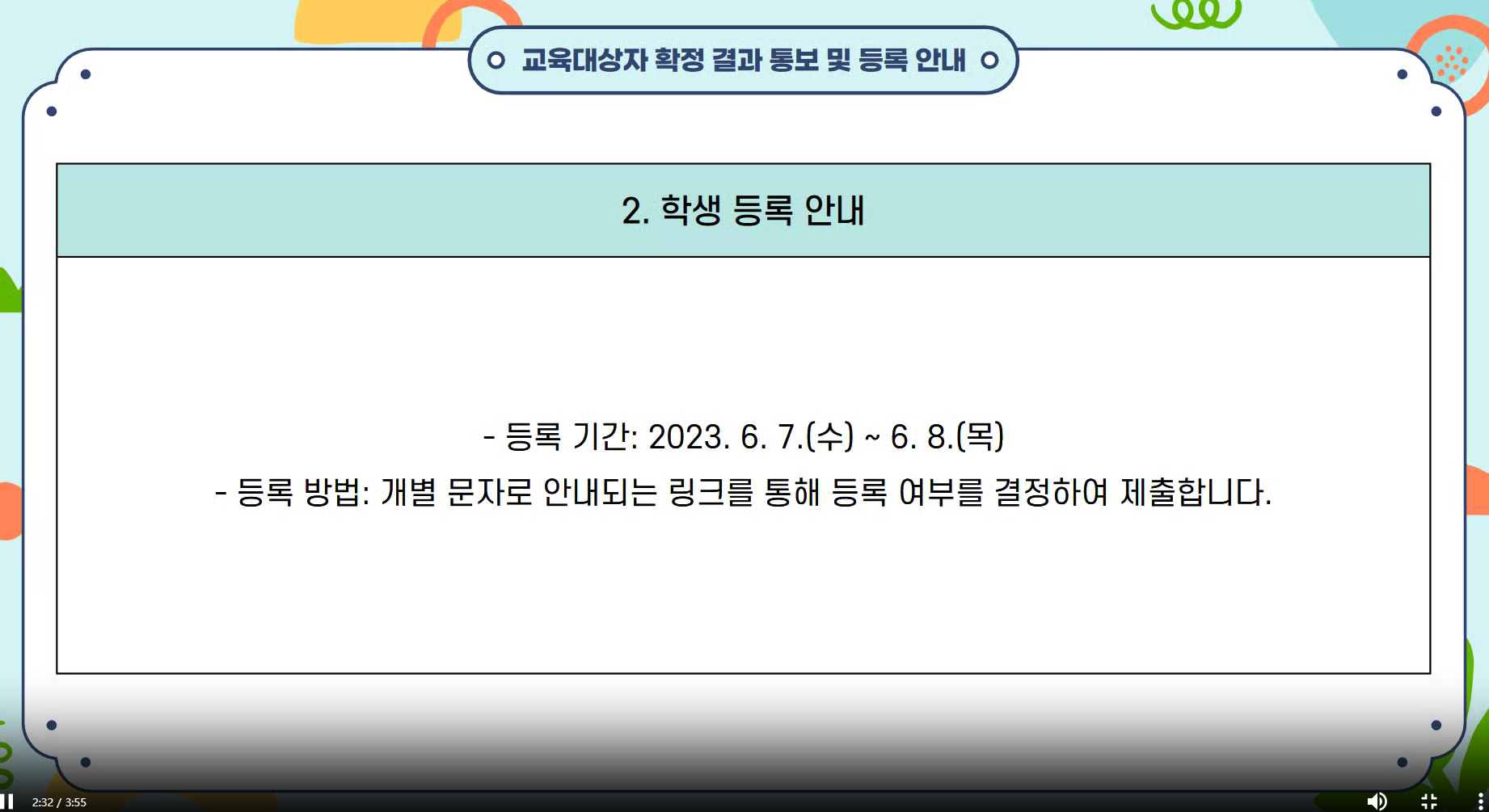 7. 등록기간: 6월 7일(수) ~ 6월 8일(목) 개별 문자 안내 후 링크를 통해 등록