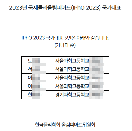 ✔ 2022년에 교육을 받고 선발된 2023년 국제물리올림피아드 국가대표단입니다. 국제올림피아드에서 매년 대한민국은 10위권 안을 유지하고 있다고 합니다. 올해도 좋은 성적을 기대해 보겠습니다.