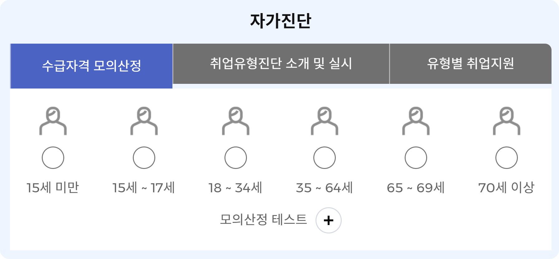 수급자격 모의산정으로 나의 유형과 구직촉진수당이 결정됩니다.