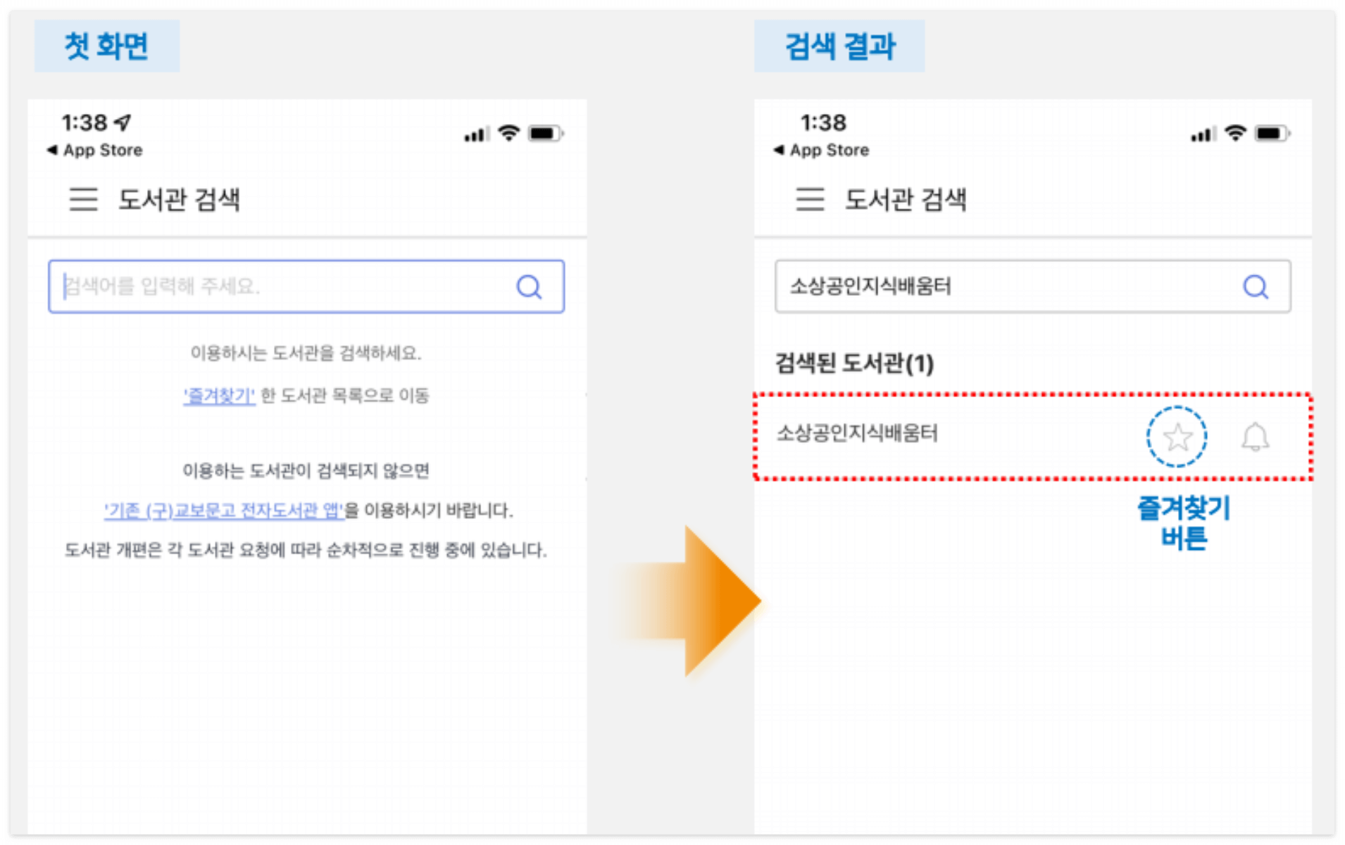 전자도서관 모바일앱을 다운로드했다면 검색창에 소상공인지식배움터를 검색합니다.
