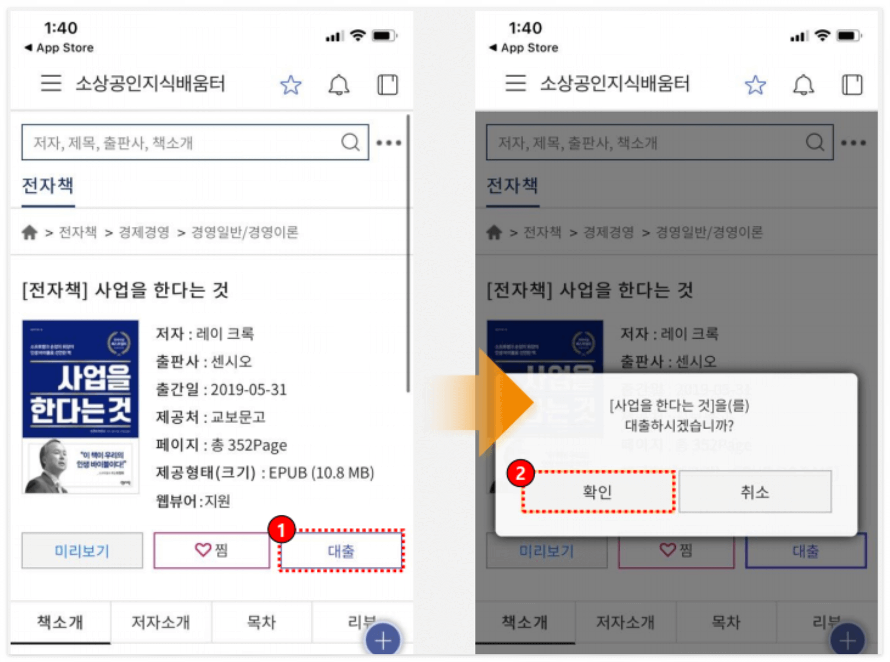 먼저 소상공인지식배움터 사이트에서 간단한 휴대폰 인증으로 전자책을 무료로 대여할 수 있습니다.