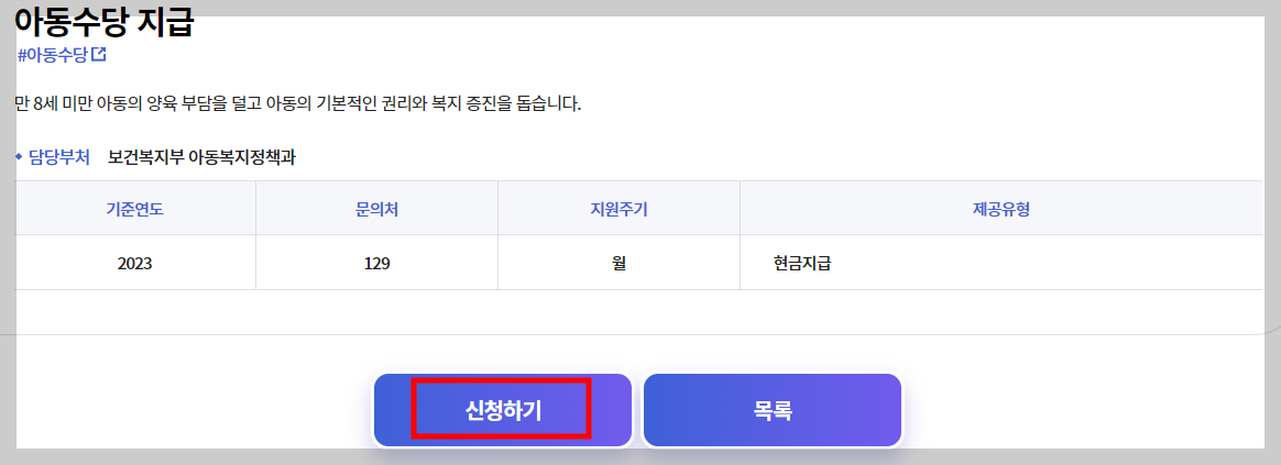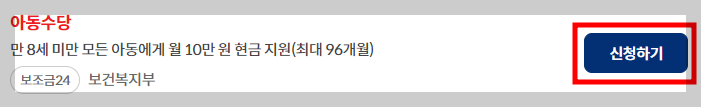 신청일이 속하는 달부터 매달 25일에 대상 아동 1인당 10만 원이 현금으로 지급됩니다.