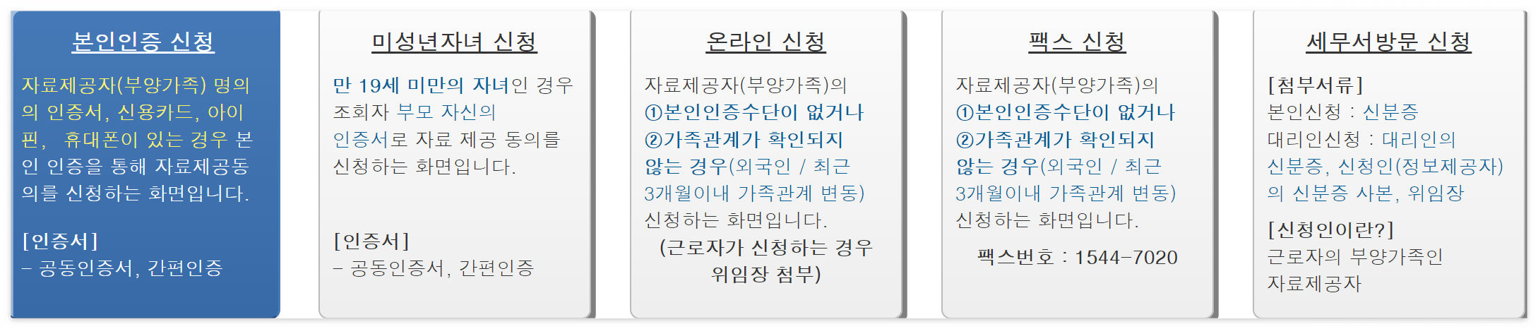소득 세액 공제를 확인하기 위해서는 부양가족의 자료 조회해야 합니다.