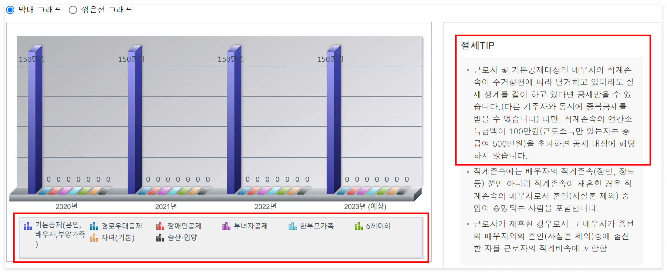 기본공제(본인, 배우자, 부양가족), 경로우대공제, 장애인공제, 부녀자공제, 한부모가족, 6세 이하 등의 절세 TIP을 확인할 수 있습니다.