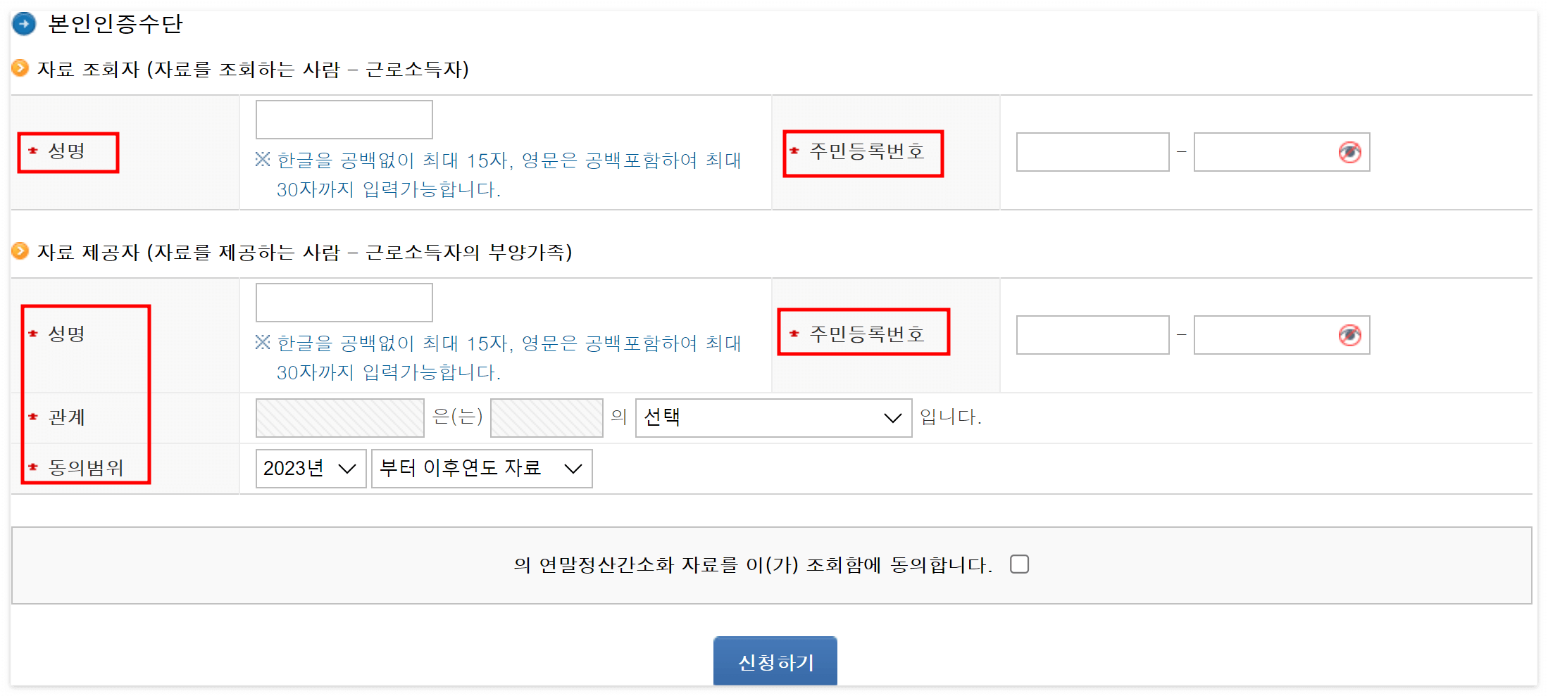 소득 세액 공제를 확인하기 위해서는 부양가족의 자료 조회해야 합니다.