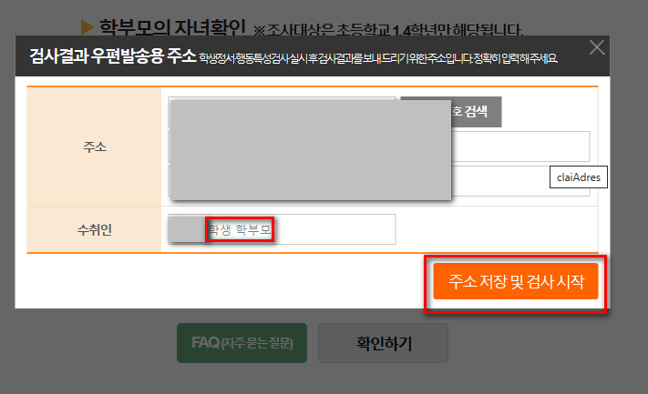 비밀보장으로 밀봉된 우편물이 학생의 주소로 발송되기 때문에 마지막에 우편물을 받으실 주소를 잘 입력해야 합니다.