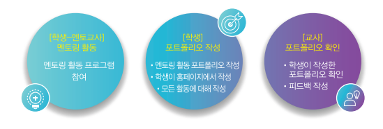 또한 개인별 포트폴리오 관리도 진행되는데 참여 학생들이 직접 교육프로그램에 참여하면서 참여한 이력 및 소감을 작성하고 담당 멘토교사가 내용을 확인하고 피드백을 전해주는 과정을 통해서 체계적인 기록을 관리한다고 합니다.