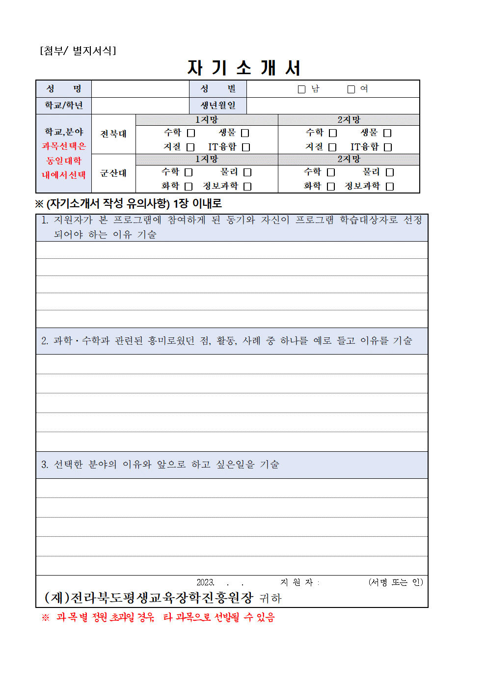 *과목별 정원 초과일 경우, 타 과목으로 선발될 수 있습니다.